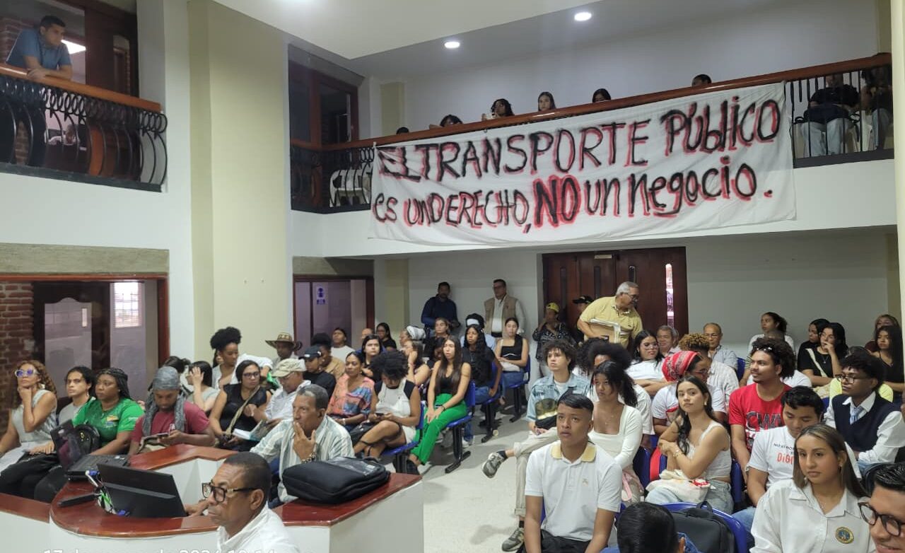 En la intervención ciudadana, Robbinson Villadiego, directora de la Liga de Usuarios del Transporte Masivo, indicó que la Ley 105 permite la aplicación de subsidios en las tarifas del transporte público. Señaló que en Cartagena el proyecto plantea subsidiar el 25,64% del valor del pasaje para beneficiar a población vulnerable. No obstante, manifestó preocupaciones relacionadas con el funcionamiento del sistema, señalando que el sobrecupo en buses supera el 170%, especialmente en los buses padrones, lo que genera riesgos de accidentes e inseguridad para los usuarios. También indicó que cerca del 60% de los buses presenta deficiencias en el servicio de aire acondicionado y que estaciones como Centro 1 y La Bodeguita cuentan con un solo vigilante. Propuso establecer convenios con la Policía Nacional para mejorar la seguridad en estaciones.